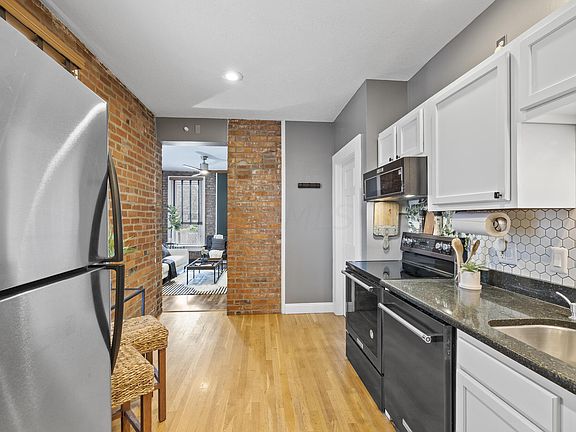 Beautifully updated & well-maintained brick condo in the heart of Vic Village/Harrison West w/ 2 off street parking spaces. 2nd floor condo boasts tons of charm w/ exposed brick throughout, original hw floors, & 10ft ceilings. Eat in kit. features new appls, Granite countertops, updated cabinets, mosaic backsplash & pull down spray faucet. Stylish LR with updated Pergo floors, tons of natural light & modern ceiling fan. Lg owners suite features original decorative fireplace, access to private 2nd floor balcony-can view 4th of July fireworks.! Walk-in closet & laundry rm with floor to ceiling closet space/storage. Lg updated tile bathroom w/ dual vanity sinks, walk in shower with multiple body sprayers. 2nd floor bedrm suite w/office/lounge nook. RH Lighting, fixtures thru-out. W/D stay!