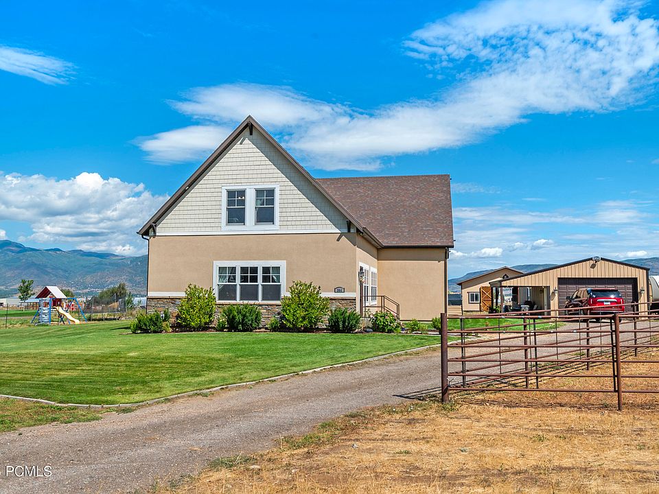 With breathtaking views of Mt. Timpanogos, the property includes 4 water shares with 20 additional shares available for purchase. Feature six rail pipe fencing, an expansive horse arena, a spacious custom barn, a garden area, and pastures custom designed by an equine nutritionist. A detached garage provides generous space for equipment, hobbies, or additional storage. The home offers 4 bedrooms, 2.5 bathrooms, and high end finishes throughout. The gourmet kitchen showcases custom cabinets, an oversized island, stainless steel appliances including Wolf rangetop and wall ovens, and a cavernous walk-in pantry. Additionally, this house was designed to be easily expanded. The first floor is ready to be zipped out and easily transformed into an extra-large four car garage, and the west side of the house is prepped to have 9-foot basement ceilings if a larger home is desired. Perfectly located for year-round recreation, this property is just minutes from Deer Creek and Jordanelle Reservoirs, world class ski resorts, and 90 holes of championship golf. With quick access to Provo, Park City, and Strawberry Reservoir, this is a truly unique opportunity to own a stunning piece of paradise in one of Utah's most desirable valleys.