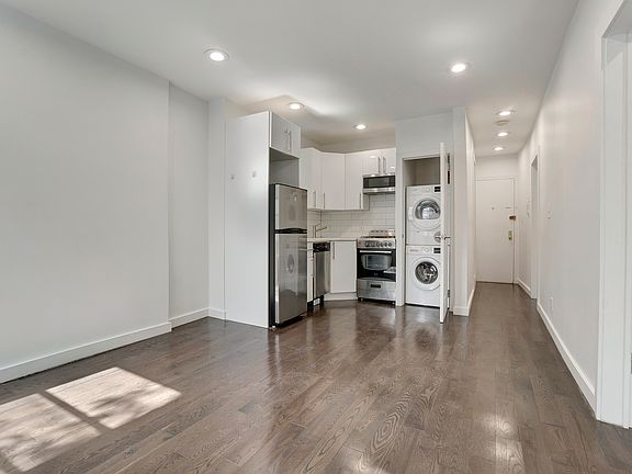 Enjoy a beautiful corner kitchen loaded with premier stainless steel appliances, sexy subway tile backsplash, designer-white lacquer cabinetry, brushed nickel hardware finishing and LED lighting. A high capacity BOSCH washer/dryer units are conveniently located directly in-unit. The lovely formal living room baths in natural sunlight via two large South-facing window panes, offering a cozy setting for entertaining guests or enjoying a quiet night in.
