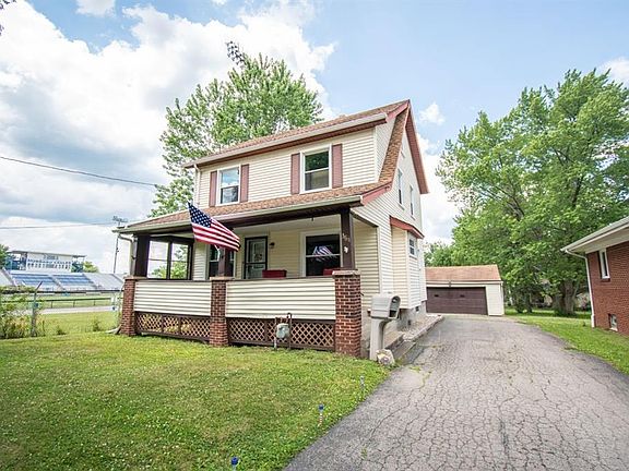 This home has been fully refurbished with all the historical character & details left intact. The large front porch is inviting and cool for summer time enjoyment. Inside you will find all new laminate floors, fresh paint, 8" baseboards, a gorgeous built in dining room buffet, original to the home. The brick fireplace is a lovely decorative focal point in the large open living room. The kitchen comes equipped with appliances and showcases new glass backsplash. The adjoining morning room is perfect for breakfast and conversation overlooking the back yard. Upstairs are 3 bedrooms, main bath and bonus room which would be perfect as a craft room, office or converted to a walk-in closet. Basement has a completely finished rec. room with new carpet and built in storage. There is also a large utility room and 2nd full bath at basement level. Additional upgrades include: new light fixtures, river rock landscaping, 8x10 tool shed (with electric), new carpet on staircase and in basement, shiplap added to basement staircase. Enjoy some s'mores on the backyard firepit because seller is leaving it for new owners. New double hung viny windows throughout. Put the coffee on, because this will be the place everyone wants to gather.Also updated: Furnace/Air 2014, Water heater 2011, Sump pump 2018. Roof age is unknown was replaced by previous owners.NOTE: Seller will leave the bedroom armoire for 'closet' space if buyer wishes to have it.