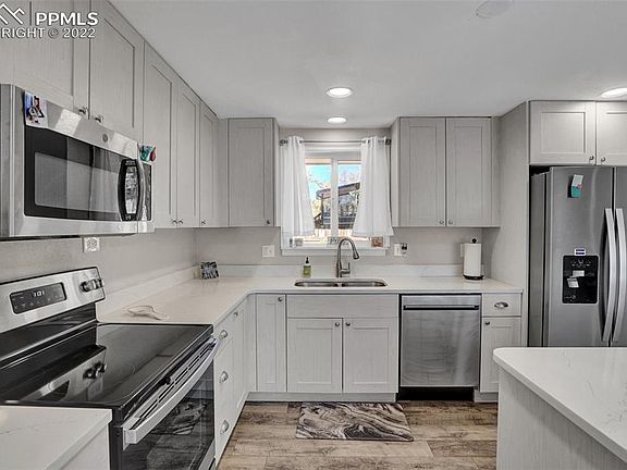 One of a kind move-in ready home across from Palmer Park with an ideal in-law apartment or income property for short or long-term rental! The primary home features 4 bedrooms and 3 baths PLUS a 1 bedroom apartment with private access that has a full kitchen and is fully furnished and just ready for you to market as a vacation rental space! The main level of the primary home features luxury vinyl wood flooring and a gorgeous updated kitchen! A large center island with seating, Quartz countertops, stainless steel appliances and cabinetry with soft closing drawers is the ideal place for the family to gather! Great open-concept floorplan with large windows at both the front and the back of the home providing tons of natural light! Convenient main level access to your attached oversized 2-car garage with a service door to the backyard! The primary bedroom is located on the upper level has a wall of closets and a bright private en-suite with double vanities! There are 2 more bedrooms and another full bathroom on the upper level. Just a few steps down from the main level is a spacious family room with a gas fireplace to enjoy on the upcoming chilly Colorado evenings! The 4th bedroom, a bathroom with a walk-in shower and a laundry area can also be found on the lower level. The basement apartment has private access from the back and has 2 assigned parking spaces! This one bedroom unit is fully furnished and has a full kitchen and bathroom that are fully stocked with 2 years NEW appliances and supplies and is ready for you to use as an income property! NO HOA! The xeriscaped back yard is fully fenced and has a concrete patio to enjoy and a shed for additional storage. This home truly has it all! Come and take a look today!
