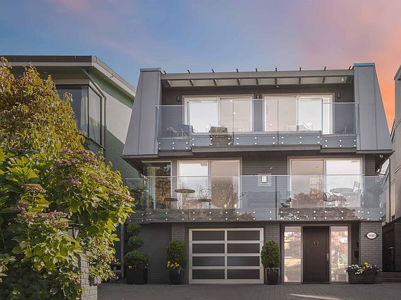 Rare VIEW 3 bed/2.5 bath home on one of Vancouver's best kept secrets-Cameron Avenue, a quiet waterfront cul-de-sac north of Pt Grey Rd & steps to the beach! Designer LR & DR w/HW floors, gas fireplace w/stone mantle, stunning water views, front to back natural light + sea breezes, gourmet kitchen w/eating bar opens to sunny family room. Pbdrm w/5-pce ensuite, office, private deck & even better views + an oversized sunny back deck on top level and 2 add'I bedrooms & full bath on the entry level. Skylights, tons of built-ins, attached single car garage w/EV charging & lg crawl space Renovated to the studs & rebuilt in 1999. Stroll to the beach, Royal Van Yacht Club, Jericho Tennis Club, Brock House, trails, nearby shops & restaurants-or simply sit back & watch the boats sail by.***By Appt.