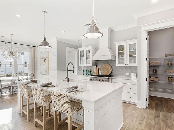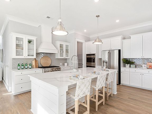The Colonial Floor Plan features 2545 sq. ft with a FIRST FLOOR OWNER'S SUITE, wrapped front porch and a screened porch, Create lasting memories in your open concept kitchen that flows directly into your family room and dining room. Upon arriving you enter a grand two-story foyer. This home comes beautifully appointed with a gourmet chef's kitchen including a stainless steel 6 burner gas cooktop and stylish built-in vented hood, double wall ovens, built in convection microwave, white cabinets up to the ceiling, quartz countertops, farm sink, herringbone subway tile backsplash, walk-in pantry, and counter-height shiplap wrapped island with pendant lighting. Three bedrooms and huge loft upstairs ample laundry room upstairs but also additional stackable connections in master on first floor.You will find a spacious owner's suite on the first floor with a walk-in closet. The spa inspired bath will have dual vanities, a luxury tile shower with tile floors, dual shower heads including a rainhead, a frameless glass door, elongated toilets with soft close lids and a freestanding soaker tub with a wainscoting surround. Premium flooring( no carpet) throughout , tile floors in all bathrooms, 10-foot ceilings and eight-foot solid doors downstairs, a cozy gas fireplace wrapped in shiplap, open railings, cottage trim package, drop zone, gas lanterns, and much more. Estimated completion December 2023