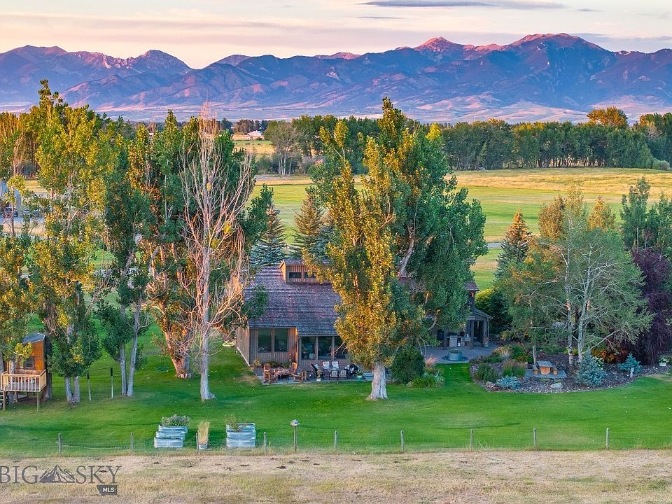 One of Bozeman's most private south side locations. This private oasis offers 21+/- acres with views to the south and backing to conservation easement property along Middle Creek. This stunning 3640+/- sq ft 4 bedroom, 4 bath home is completely setup for horses with barn, shop and additional outbuildings. The pasture features a small year round creek and is fenced and cross fenced. The mature landscape is positioned to create a natural buffer and opens the view to Hyalite and Spanish Peak mountains. This property has been family owned and is being offered for the first time in almost 50 years. The property offers no zoning and no covenants. The home has been beautifully transformed and offers a chef's kitchen with a 60" commercial range and 40" commercial True refrigerator. One bedroom on the main, and three additional bedrooms (including Master) upstairs. The attached 4 car garage is heated and finished and offers 1050+/- sq ft. This home with acreage needs to be seen to be appreciated. The private backyard space is great for entertaining and enjoying with family.