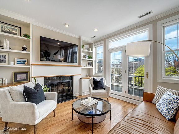 Welcome to this stunning Roscoe Village penthouse, where bright, open living meets exceptional outdoor space. This beautifully updated 2-bedroom, 2-bathroom home offers a rare sense of privacy and scale, culminating in a sprawling private roof deck with skyline views. Inside, the home is filled with natural light from oversized windows and elevated by high ceilings, hardwood floors, and elegant crown molding. The spacious living room features custom built-ins and a gas fireplace, creating a cozy yet refined gathering space. A separate, full-sized dining area offers the perfect setting for both everyday meals and special occasions. The kitchen has been thoughtfully updated with timeless finishes: crisp white cabinetry, quartz countertops, tile backsplash, stainless steel appliances, and a center island ideal for prep or casual dining. At the rear of the home, the king-sized primary suite opens to a private rear deck and features an ensuite bath with dual vanity, and large tub/ shower. Private interior stairs lead to the show-stopping rooftop deck-an outdoor oasis outfitted with a pergola, water line, and electric service. Whether hosting friends or enjoying quiet evenings under the stars, this space offers unmatched flexibility for lounging, dining, and entertaining. Additional highlights include a generous second bedroom, updated second bath, in-unit laundry, and custom window treatments throughout. Perfectly positioned on a tree-lined street in Roscoe Village and just steps from the heart of North Center, with easy access to the Brown Line, Trader Joe's, parks, top restaurants, and neighborhood favorites.