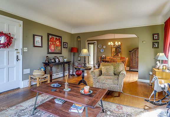 Warm, stylish Rose City English on over-sized corner lot with crown molding and period details. Hardwoods. Radiant heat. Heated floors in kitchen and bathroom. On-demand, tankless gas heaters for water and radiant heat. Plumbed for second bathroom on lower level. Tons of storage. Detached garage could be a great spot for an ADU.