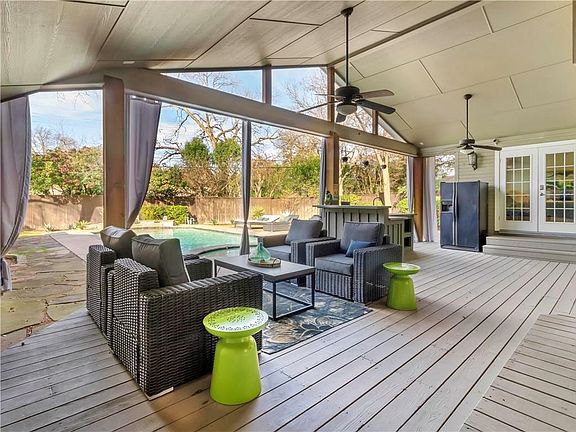 Located on a quiet tree-lined street, you would hardly guess this beautiful home with a private backyard resort is just blocks from the TCU campus. Charm abounds starting at the entry, with a covered front porch and swing. Large living room with fireplace surrounded by marble has gleaming hardwoods and opens to the light-filled dining room with French doors and a dramatic chandelier. The lovely and spacious adjacent kitchen features a breakfast bar, granite counters, and an under mount hammered copper sink. A cozy sitting room doubles as breakfast nook, library, office or wine pantry. Large master bedroom has a walk-in-closet, built ins, a great view of the pool, and another set of French doors leading directly to the backyard resort. Wonderful covered back patio overlooks large treed yard and backyard resort complete with a greenhouse. Envision time with family and friends in a spacious outdoor living area with two TV's and an outdoor kitchen complete with bar seating. Watch a football game while cooling off in the pool or enjoy a relaxing movie night from the hot tub!Shaded by beautiful oak trees, this home has been lovingly maintained, updated and expanded. The flexible floor plan offers three bedrooms and two full baths down, the master and laundry room separated in the rear addition, and a bonus room, (game room/office/ fourth bedroom) and bathroom upstairs. Perfect location within walking distance from all that the TCU campus has to offer, some small local shops and restaurants, and just a few minutes to the Cultural District sites and museums and downtown Fort Worth!