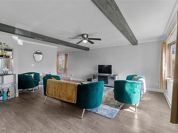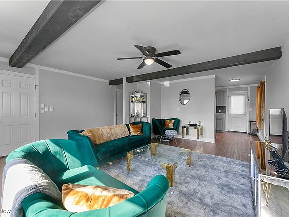 Don’t miss your chance to own this beautifully updated gem, offering the perfect blend of charm, comfort, and convenience—all on a single level! Just under 1,100 square feet, this move-in-ready home features 2 spacious bedrooms, 2 full bathrooms, and bright, open-concept living ideal for easy living and entertaining. From the moment you arrive, you’ll be impressed by the eye-catching curb appeal, complete with a striking black front door and elegant stone accent wall. Step inside to a light-filled living room, where a stunning bay window and exposed wood beams create a warm and inviting atmosphere. Around the corner, the updated, sunlit kitchen shines with all-new stainless steel Samsung appliances, abundant custom shaker cabinets with crown molding, gorgeous mosaic tile backsplash, and generous counter space. A convenient side entrance leads to your private backyard oasis featuring a concrete patio—perfect for outdoor gatherings and cozy bonfires. nDown the hall, you’ll find two generously sized bedrooms, including a primary suite with a private en-suite bathroom, a walk-in shower, and a huge walk-in closet. An additional full bathroom and a spacious laundry area with upper and lower cabinetry and counter space complete the interior.