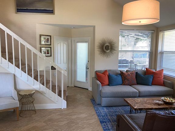 Beautifully remodeled Wellesley Townhouse at Sunset Trace in desirable Palm City. Tiled floors, stainless steel kitchen appliances and front load washer and dryer. window coverings, granite counters throughout. Screened in lanai with two parking spaces and ample guest parking. Two community pools, tennis and racquet ball courts. Zoned for A-rated Citrus Grove Elementary and Hidden Oaks Middle schools and close to both I-95 and Turnpike for an easy commute. Basic cable included. First, Last and Security due at lease signing with qualified credit. HOA application fee and approval required. Tenant pays water, electric, and optional internet and cable upgrades. Pet Fee $250