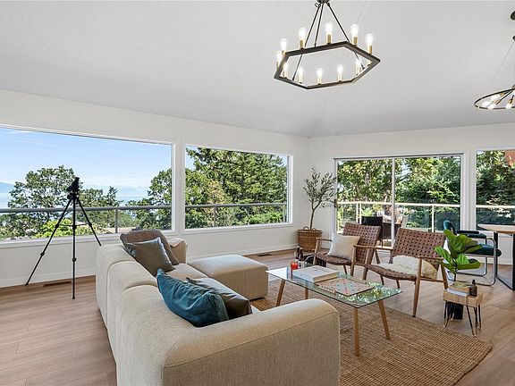 Perched on a rare 16,944 sq ft lot in Hammond Bay, this 3,242 sq ft 3 bed/3 bath home showcases stunning ocean views from nearly every room. The open-concept main level features 15-ft vaulted ceilings, expansive windows, and 700+ sq ft of oceanview decks. The brand-new kitchen boasts quartz counters, peninsula seating, and never-used appliances. The primary suite includes a walk-in closet, renovated ensuite, and private deck access. Downstairs offers a spacious family room, guest suite with ensuite, and walkout to the large backyard. Extensive 2025 updates ($180K+) include new kitchen, baths, appliances, PEX plumbing, flooring, paint, decks, and more. Added features: double garage, heat pump, built-in vacuum, and private yards. Conveniently close to schools, shopping, parks, ferry, and NRGH. A rare move-in ready home with space, style, and unmatched ocean views in one of Nanaimo’s most desirable neighbourhoods