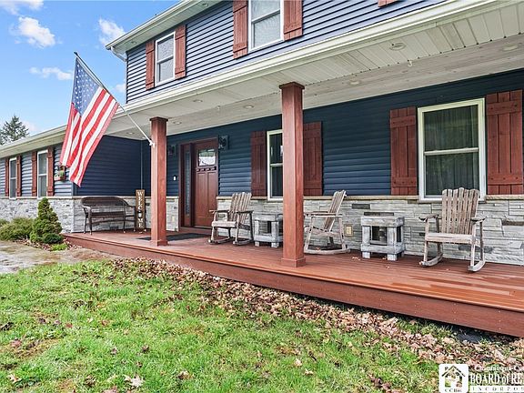Welcome to this nicely maintained 4BR/2.5 bath, Marilla home that offers 1,920 square feet of comfortable living space located in the Iroquois School District. Nestled in a peaceful neighborhood this home is situated on an ample size lot that offers the perfect backyard oasis during those warm summer days. There is plenty of space to enjoy around the in-ground pool that had an updated salt water system, mechanics and heater in 2018. As you walk into the front door the living room to the right opens right up to the dining room and fully applianced, spacious kitchen. As you continue through the kitchen the first floor finishes off with a half bath and cozy family room where you can enjoy a nice fire on those cold winter days. A pair of charming barn doors sets the family room apart from a bonus den space with sliding glass doors that let in the natural light and overlook the back yard. Upstairs you have 4 spacious bedrooms that each have their own unique charm and character and a full bath. The primary bedroom is tastefully redone with a reclaimed wood wall, updated light fixture, a cedar closet, barn doors and an updated primary bath. Updates throughout the home in the last 8 years include full tear off roof on both the main house and garage, updated exterior siding on most of the house, updated front entryway and porch, updated garage door, updated landscaping, concrete driveway, updated flooring throughout, updated light fixtures throughout, updated furnace, central air and HWT. Showings begin on Tuesday, April 15th. Offers, if any will be due Wednesday, April 23rd @ 3PM. Don't miss out on your opportunity to see this amazing home.