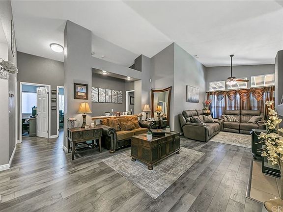 Beautiful Single Story Home Located in a Desirable Neighborhood. This Gorgeous Home Features 4 Spacious Bedrooms & 2 Full Bathrooms. Custom Two Toned Interior Paint, & New Vinyl Flooring. Spacious Kitchen Featuring Custom Tile Counter Tops, Stainless Steel Appliances, an Abundance of Cabinets for Storage, & a Large Breakfast Bar for Entertaining. Spacious Family Room with a Gorgeous Fireplace. Master Bedroom Offers a Large Closet, & Dual Sinks. Three Additional Bedrooms Featuring Large Closets & Ceiling Fans. Indoor Laundry Room, an Oversized Attached 2 Car Garage. & Passible RV Access. Large Pool Size Backyard, Covered Patio, Landscaped with Luscious Green Grass. Located on a Corner Lot. Come See Why It's Not Just a House, It's Your Home!