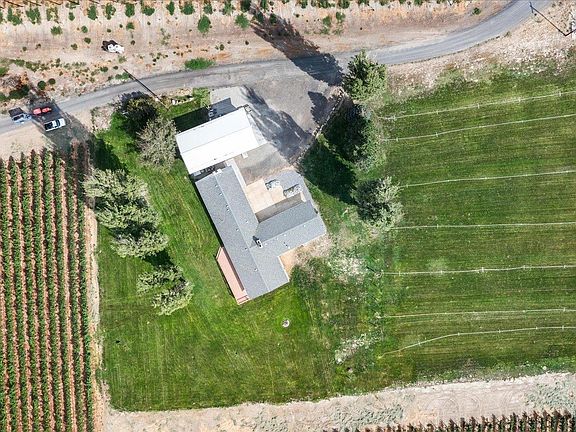 MLS# 287386 In the middle of wine country! Amazing Views of the Valley, Horse Heaven Hills and Mt. Adams in a peaceful vineyard setting. This home features 3 bedroom, 2 bathrooms with potential for a 3rd bathroom. There is a spacious living room with oversized windows for taking in the amazing 180 degree view, game/family room with a wet bar and wood burning fireplace, spacious kitchen w/oversized informal eating area. The lower level has a second family/rec room, which also takes in the vast view. Laundry rooms upstairs and down. Expansive wraparound deck to take in the panoramic view from all sides. Oversized open courtyard patio. Super efficient Geo-thermal Heating and Cooling System. Newer 24 x 48 insulated shop, with two 12 ft doors, 400 Amp service, mezzanine storage, and RV hook-up. The well was upgraded in 2024. A must see if you are looking for peace and quiet w/breathtaking views!