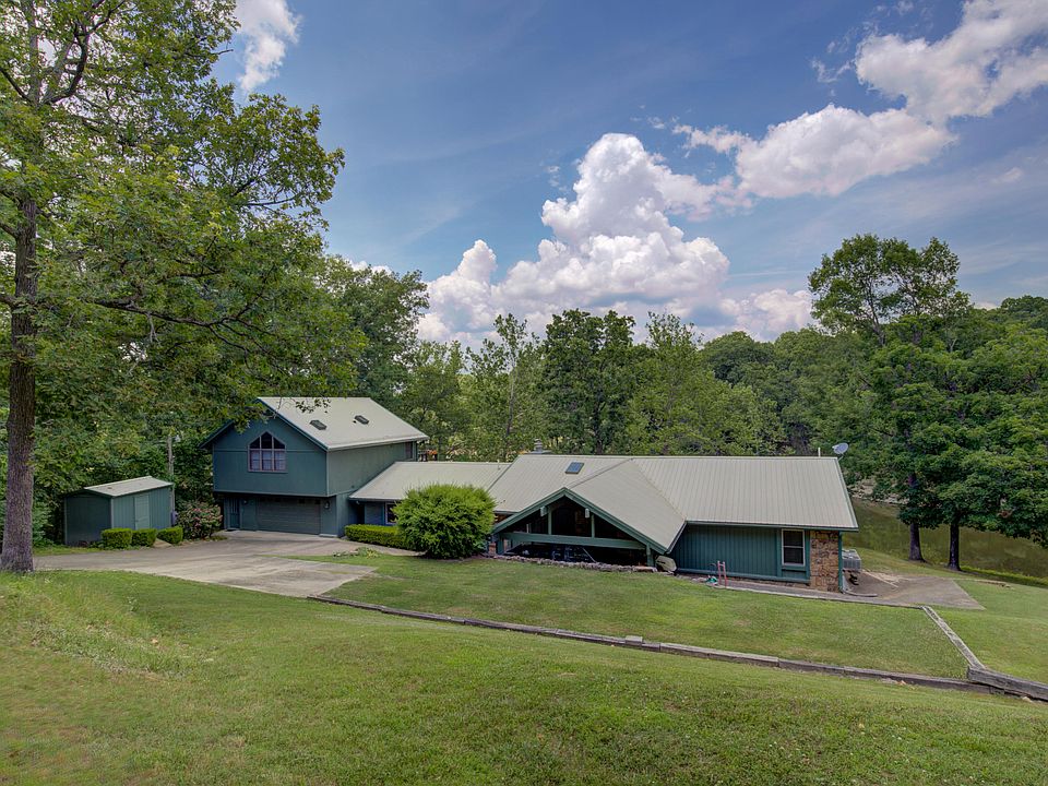 Large and spacious lakefront home in Ghost Hollow offers 5 bedrooms and 3 full baths in the main home, 2 living areas, windows across the lakeside of the home with an awesome deck across the entire back of home, a playground for the little ones, a very gentle slope to a covered 2-slip dock that has encapsulated foam and located in a very protected, secluded cove. The oversized-detached garage has heat and air and the 1 bedroom, 1 bath apartment is located above the garage. The apartment comes completely furnished, lots of storage, stackable washer/dryer and can be accessed from inside the garage or from the outside separate from the main home. This lake home is located just 8 minutes east of Disney.