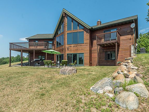Enjoy Northwoods elegance wherever you look in this expansive 4BR/3BA home on 2.78 acres completed in 2001. Private 33' easement directly in front of the property for lake access, lake side shed and dock area. The main floor has a spa like master suite with new bath, private balcony and two sided fireplace. It also boasts a kitchen set up for anyone who likes to cook with its center island, high end finishes and loads of pantry space. The living room is the focal point with its vaulted ceilings, hardwood floors, fireplace and panoramic views of woods and water. The walkout lower level has 3 BR's a full bath with sauna, office area, fireplace and exercise area. Tons of storage, attached garage, 30x52 pole building and wonderful location near trails, Deer and Moose Lakes.
