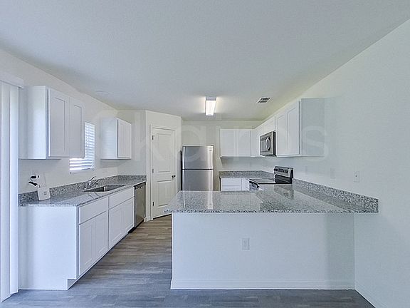 Gorgeous home in a beautiful neighborhood! This spacious 3 bedroom, 2 bathroom single-family home in North Port features: Keyless Locks, Smart Thermostat, Primary Suite, Hardwood Floors, Granite Countertops, Stainless Steel Appliances, Office, Open Concept Layout, Washer/Dryer Hook-Ups, and Two-Car Garage. Kairos Living has no pet restrictions and is happy to provide long-term leases and 24/7 Emergency Maintenance! Amenity Fees May Apply. Please see last photo in reel for all applicable DISCLAIMERS.