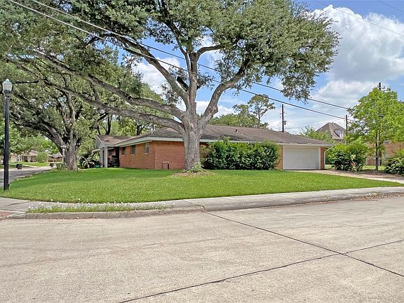 Welcome to this stylishly updated 4-bedroom 3-full-bath home in the Braes Manor subdivision. Set among mature trees on a high, elevated lot, this house has never flooded. The well-planned layout offers a spacious formal living and dining area, perfect for family events. The large family room boasts a high soaring ceiling, crown molding, and attractive wood beams. A sliding glass door leads to the expansive backyard and patio. The kitchen features SS appliances with fridge, white display cabinets, granite counters, and opens to the breakfast area. The oversized primary bedroom has a built-in dresser. The primary bath includes a sleek whirlpool tub and walk-in shower. Hardwood and laminate floors run through guest rooms. Utility room features a vanity and handy organizing counter. 2024 water heater. This home is near Longfellow Elementary, Linkwood Park, and Braes Bayou trails. Also close to TMC, downtown, Galleria, Reliant Stadium, Museum District, West U, U of H, Rice, and St. Thomas.