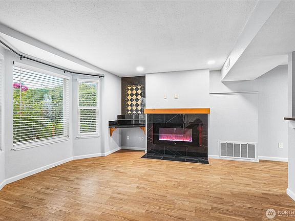 Covered patioElectric fireplaceWell-appointed kitchenLush semi-private backyardCustom tileCozy dining areaStainless steel appliances