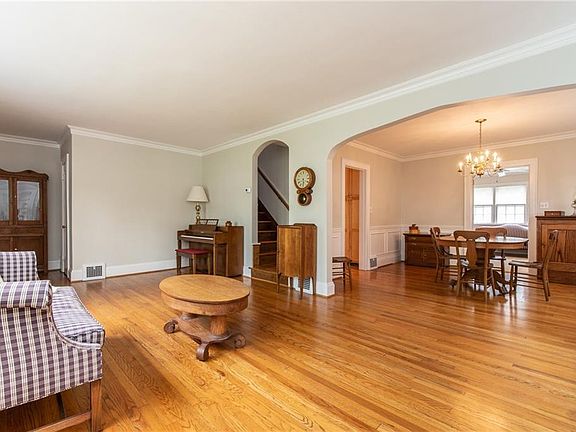 Gardens galore in this charming, bright Colonial with central air conditioning! Large Living Room with built-in seats next to the Wood-burning Fireplace, gleaming Hardwood Floors, Crown Moldings, and plenty of Windows for Sun Light. Living Room opens up to the Formal Dining Room with Hardwood Floors. Separate, Cozy Family Room or First-floor office. Beautifully Remodeled Eat-in Kitchen with Granite Countertops, Under Cabinet Lighting, Stainless Steel Appliances, and Hardwood Floors. Total; 4 Bedrooms and 2 1/2 Baths.. Fourth Bedroom is on the Third and has a Skylight, Office, Full Bath and separate heating and window air conditioning units. Finished Lower Level Rec: Room w/ Built-in Shelves. Enjoy the back and side Yards with 2 separate patios to enjoy the beautiful Cleveland weather or to entertain! Beautiful Perennial Gardens and Herb Gardens. 2 Car Garage. Central Air. Walk to Shops and Restaurants! Close to Thornton Pool, tennis courts, and the newly-built Van Aken District. 20 Minutes to University Circle, Cleveland Clinic, University Hospitals, and Severance Hall (Home of the world-famous Cleveland Orchestra). Walk to the Shaker Rapid transit! You're gonna love it!