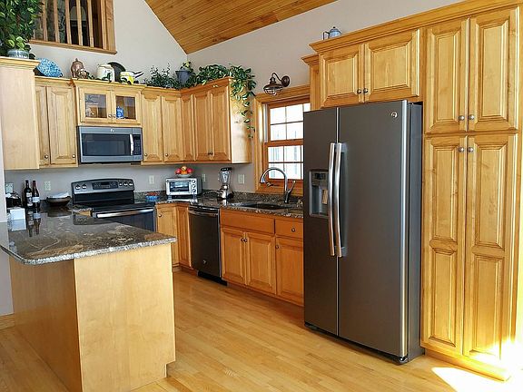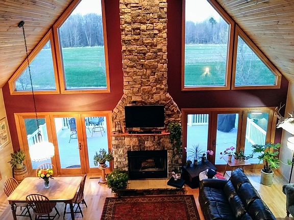 Enjoy the solitude of the country with this quality built turn key home set on 5 private acres. Inside is an open concept style, the huge living room you've wanted, plus a kitchen with maple cabinetry / granite countertops, dining room with patio doors to the deck, plenty of windows to let the outdoors in, all set under a vaulted ceiling. Finishing touch, a floor to peak fireplace. Cozy enough for two, spacious enough for entertaining. The main floor also includes a foyer, two bedrooms, full bath, laundry and half bath. Atop the black walnut open staircase is the family room (which overlooks the main floor) including its own two sided gas fireplace. On the other side of the fireplace is the master suite. Too impressive to describe! The home has an over sized two stall attached garage with basement access. The unfinished basement has in-floor heating, supplied from an outdoor wood furnace, and an egress window.Outside, imagine a 30 x 60 pole shed, a concrete floor throughout and a second 18 x 22 storage shed with concrete floor. It is enough space for all your "toys", and workshop. Property has fruit trees, including Apple, Pear and Cherry, plus a fenced blueberry patch which yields 20 gallons plus each year. Note: The covenants were drawn up by the owner of this home to protect and preserve the entire surrounding 35 acres from development. The covenants prohibit any building, or any livestock, to be placed on the surrounding land. Note: Earnest money to be made out to and mailed to: Knight-Barry 3060 Village Park Dr B, Plover, WI 54467