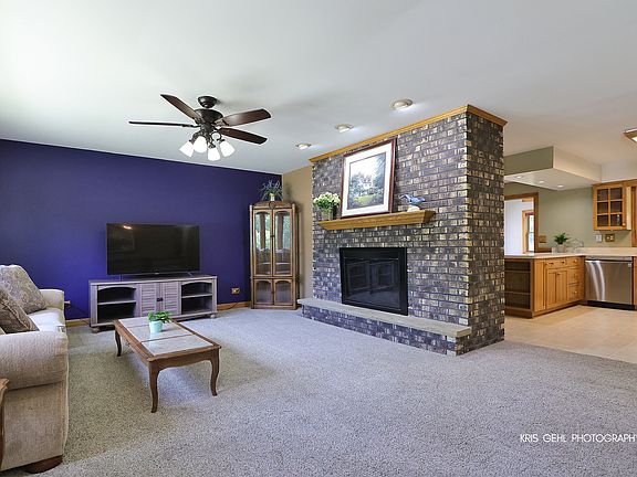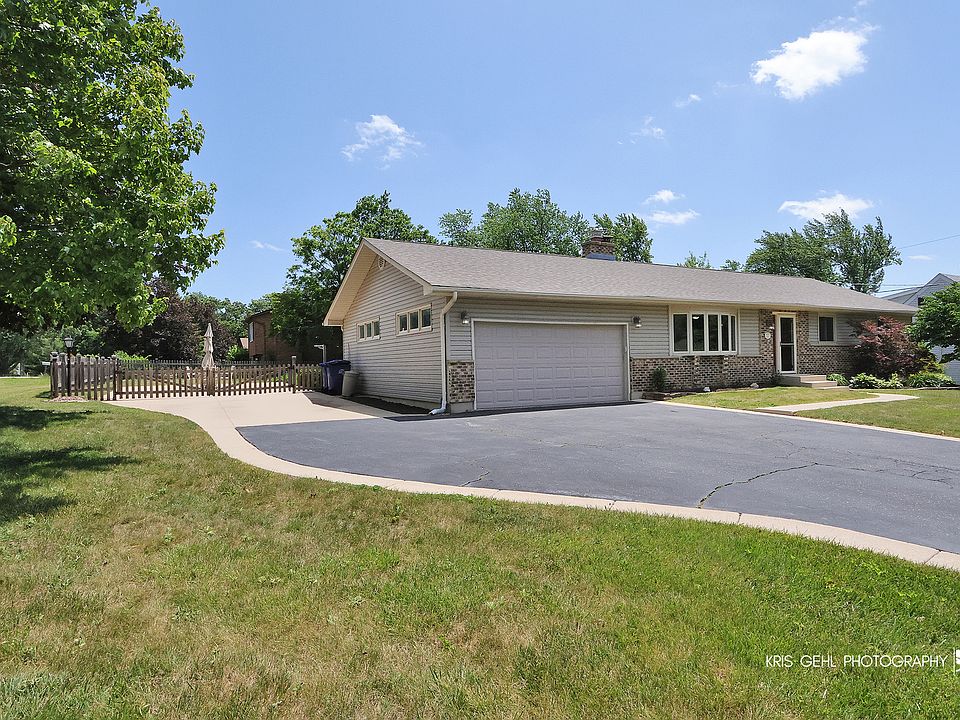 Spacious and full of natural light, this beautifully maintained ranch home sits on a prime corner lot with a fully fenced backyard, offering both privacy and room to relax or entertain. The kitchen is a chef's dream, featuring stainless steel appliances, an abundance of cabinetry, and an eat-in area that opens into a vaulted sitting/sunroom with a ceiling fan and sliders leading to a large concrete patio-perfect for summer gatherings. The backyard features a handy storage shed for your tools or outdoor gear and has a fire pit for roasting marshmallows on a summer night. Inside, you'll find two cozy fireplaces, adding warmth and character to the home. The finished basement offers direct access from the heated 2.5-car garage, a full bathroom, and endless possibilities-whether you need space for guests, an in-law arrangement, or a rec area. There's even an epoxy-coated floor and wash sink in the laundry room, plus an owned water softener for added convenience. The washer and dryer stay, making your move-in that much easier. The primary suite includes a private full bath and ample closet space. Plus 2 additional bedrooms on the main floor that share a full hall bath. Don't miss this rare opportunity to own a sought-after ranch-style home in a highly desirable school district, just minutes from shopping, dining, and the Metra station-perfect for commuters. Enjoy access to multiple nearby lakes and a beach for summer fun, and take advantage of the extra-large concrete side drive, ideal for RVs, boats, or any large vehicle you want to keep right at home for ultimate convenience. This one truly has it all-schedule your showing today!
