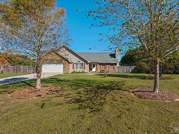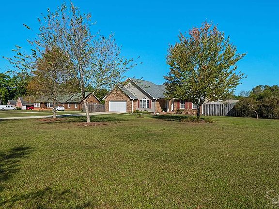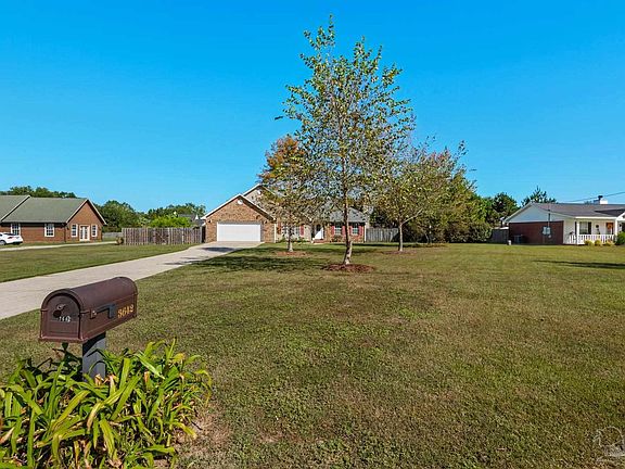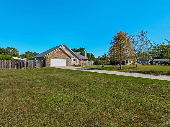 In the Heart of Pace! Your new home is everything you have hoped for. Situated on a gorgeous one acre parcel: level, high, and dry. The home is nicely set back from the street, leaving lots & lots of room in your back yard. If you're dreaming of a fruit orchard, here it is! The current owners have lovingly planted peach, blueberries, banana, fig, persimmon, and pomegranate. If you want or need a brand NEW 600 square foot metal building, with a huge 8 x 12 roll door, on a 6 inch concrete slab, and Category 4 siding, we suggest you take a close look at this wonderful family home. This home has almost 1,800 sq feet, with 3 bedrooms, 2 baths, a 2 car garage, and two exterior deck areas. Your focal point is the great room, with soaring 12 foot cathedral ceilings, which adjoins the huge, welcoming dining area. Large windows in both of these rooms provide ample sunlight all day long. Recent energy saving updates include new roof with new chimney cap in 2020, new water heater in 2019, new HVAC in 2013; all the air ducts have been cleaned and sealed in 2023. Steel hurricane shutters for all windows and doors, plus a new reinforced garage door ensure added safety, & homeowner's insurance credits! Located just a few minutes from stellar rated elementary, middle, and high schools: "Pace is the Place"!
