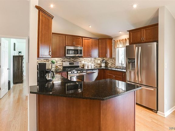 Ranch buyers will love this place. Open Sunday 1-2 July 16th Built in 2012 w full 9ft basement, vaulted ceilings, open floor plan, well planned w/ primary bdrm on one side on the home w/ walk in closet w/ custom closets system, private bath 2 vanities, whirlpool tub & shower - neutral ceramic tile. 1st floor laundry. Beautiful hardwood floors thru out the home. Enjoy the view of the yard in the 2016 built sunroom/gas stove(NRTC) w/ access to grilling deck. Tree lined rear yard w/ fire pit and Amish shed 16x10. Kitchen is cooks delight with plenty of granite counter space and all ss appliances stay. Concrete driveway, covered front porch. Why build when this is move in ready at a lower price. Minutes to I 90 and stores. Offers due July 18th. Sun 1-3 open house. Pride in ownership shows. 3 bdrms/2full baths/2 car gar/deep yard/move in ready/great mechanics.