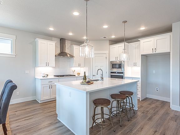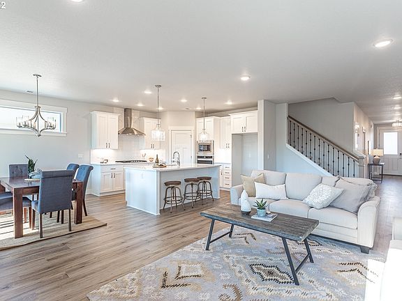 Ask about NEW YEAR SAVINGS INCENTIVE! 2 car plus shop! Mission style white cabinetry, slab quartz countertops in kitchen/bathrooms. WP stainless steel kitchen appliances inc 5-burner gas cooktop, wall oven, micro, & dishwasher. Gas fireplace in Great Room w/contemporary style mantle. Primary suite on main! Upgraded lighting pkg w/Nickle finish. Delta Woodurst SS bath plumbing fixtures. Front/rear landscaping w/sprinkler system on timer. Tankless water heater, central A/C. Earth Advantage Cert.