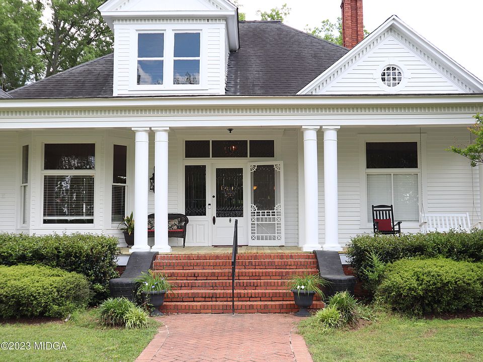 Pocket doors, 6 fireplaces, built in china cabinet in dining room, pantry, laundry room. and instant hot water heater. Master suite with walk-in closet, separate vanity, shower, and tub. Beautiful large front porch to enjoy southern afternoons. Several outbuildings including barn for lots of storage. Fenced inground pool with pool house storage and covered patio. Owners used barn as wedding venue on occasions.