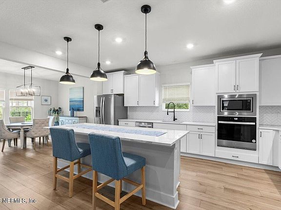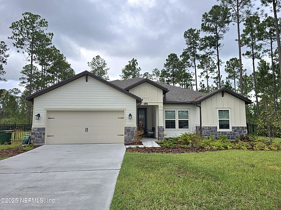 Better Than New 4/2 bath home on a premium lot with 1.31 acres designed to blend with the natural surroundings and peaceful living in desirable Southern Pines. This Luxury home features an open, split bedroom floorplan, with laminated wood like vinyl planking and granite counters throughout, stylish fixtures and lighting. The open floorplan connects the kitchen, Dining and Living room perfect for entertainment or family time. The chefs kitchen is sure to please all your culinary needs with granite counter tops, tile back splash, stainless steel appliances, beautiful cabinets and the Kitchen Island center piece with bar seating perfect for social gatherings. All bedrooms have been carefully places for individual privacy. The master bedroom features walk in closet an ensuite bathroom with dual vanities and granite counter tops private water closet, separate large tile shower and spa like tub. 3 additional bedrooms for an office/ growing family. Guest bathroom has granite counters, beautiful cabinets and a tub/shower combo. Step outside to your covered patio and enjoy natures peaceful surroundings. This home has been meticulously maintained with a 2 car garage and many updates the newer models do not have. Built and bought in 2024 some additions include updated plumbing including complete water purifying system, high rise toilets throughout, hot tub, large concrete patio addition, fenced back yard and a 220 line added for hot tub or other amenities. With Modern stylish finishes throughout and 1.3 acres of land this home is move in ready and a must see if you like Modern meets country. Bring your family and fur babies and enjoy the quiet life. Yet still close to Jacksonville and Amelia Island.
