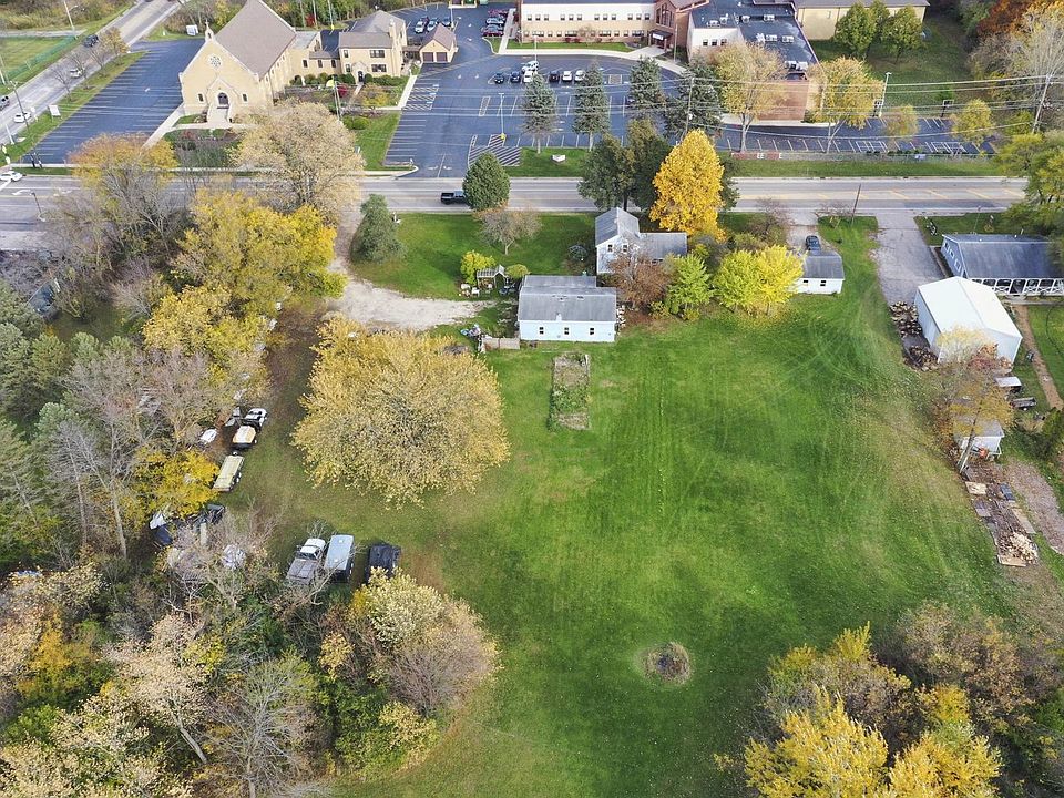 The property known as the Stanton Farm includes a farmhouse that was originally built in the pre-Civil War era according to local lore. Fieldstone foundation and some architectural details from that time brings Lake County history to life. Zoned commercial and set on 2.6 acres of flat land (see additional information for usage), the property also offers 2 outbuildings: a 1536 SF building that had been in use as an antique store for many years, the main part of which is heated with a wall furnace (40x26) plus an attached structure with an overhead door (31x16), and another building that is 792 SF (33x24) also used in the antique business. The farmhouse needs alot of work, the larger of the two outbuildings is in decent shape; the smaller needs work. Located close to the traffic light intersection of Route 59 and Wilson Road, this property is in a high volume traffic location. Bring your business here, excellent location, abundant traffic and visibility. Sold as-is.