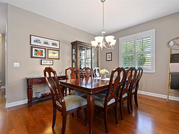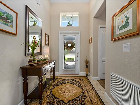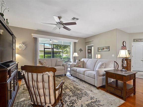 Highly sought after 55 plus community of Heritage Hills in beautiful Clermont! This popular Hamilton model has it all! 3 bedrooms plus 3 full baths and an office/flex room! Exterior was recently painted and the A/C is NEW! Upon entering you will notice the spacious foyer with a bedroom and full bath off the the left. Continue down the foyer to the office/flex room which features plantation shutters and built in cabinets which is perfect for storage. This would also be a great craft room! The other secondary bedroom has a private bath! Both bedrooms have nice upgraded carpet. The master suite features crown molding, 2 walk in closets and wood floors! The dining room and family room have wood floors and is open to the kitchen for a great entertaining area! The kitchen has under cabinet lighting, glass tile back splash, updated appliances and lots of cabinets and granite counter top space. The garage has a workbench and cabinets that stay, a refrigerator and pull down attic with stairs and flooring! The laundry room was updated with cabinets and hanging rack bar plus the washer and dryer stay. Additionally, the glass insert front door has been update and there is a screen entry way. The lot is extra large and the house sits on a corner lot that is nicely landscaped. Heritage Hills amenities include heated pool and spa, pickle ball, tennis, basketball, bocce ball, shuffleboard, clubhouse with planned activities, lots of clubs to join, fitness center, art and crafts room, billiard room, card room and ballroom for holding events. There is a 5 mile walking trail around the community. Call today for your private showing!