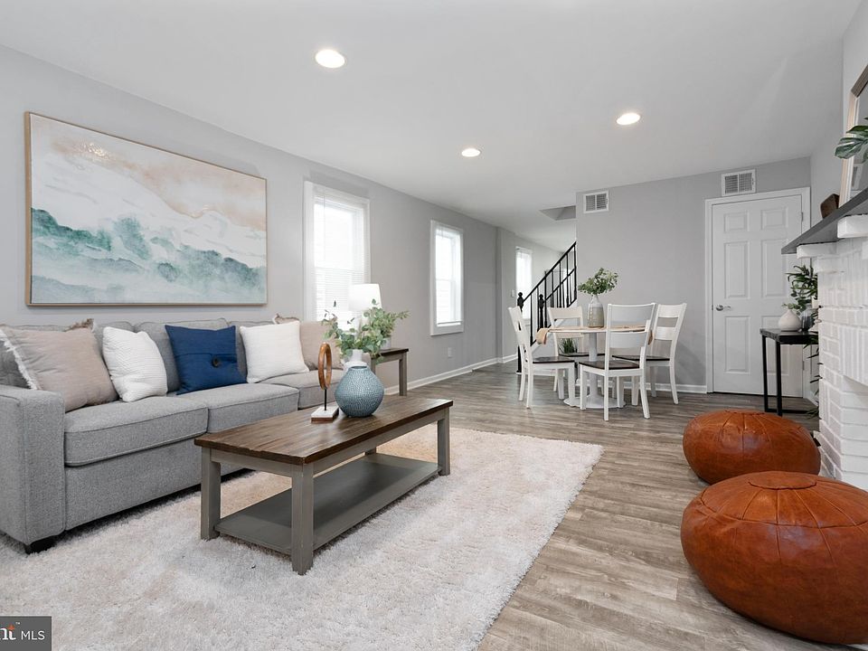 Welcome to this charming end-unit rowhome located in the heart of Hampden! Start your day with a cup of coffee on the covered front porch. As you enter, you're greeted by luxurious vinyl plank flooring and an abundance of natural light. The living room is perfect for entertaining guests and cozying up in front of the decorative fireplace. The spacious kitchen is a chef's dream, featuring stainless steel appliances, granite countertops, ample cabinet and prep space, and extra storage in the island. The main level also offers the convenience of laundry facilities. Upstairs, you'll find three generously sized bedrooms, all with plenty of natural light and spacious closets. The full shared bathroom boasts a tub/shower combo with a custom tile surround. Host summer BBQs in your fully fenced yard, ideal for outdoor gatherings. This home is within walking distance to 36th Street, the Rotunda, the Lights on 34th Street, and numerous restaurants and shops. Don't miss this opportunity to live in one of Hampden's most desirable locations!