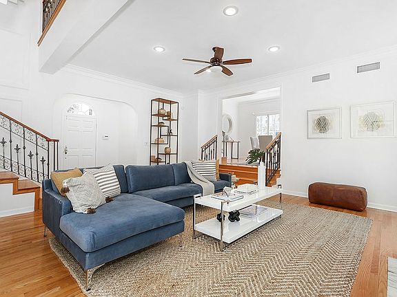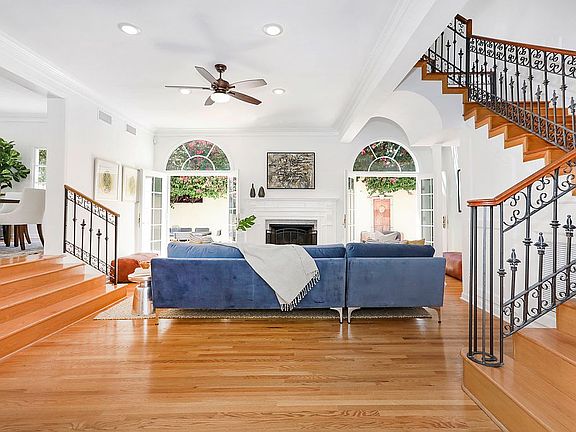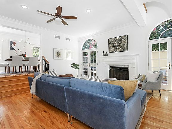 Located on a picturesque street in prime Los Feliz north of the boulevard, this beautiful character home features bright sunny rooms with large windows and high ceilings and a layout perfect for entertaining family and friends. Formal entry leads to spacious living room with soaring ceiling, fireplace and French doors opening to large tiled private patio with alfresco dining, seating, play areas and Old World fountain. Massive formal dining room leads to eat-in kitchen with walk-in pantry, center island and comfy breakfast area all overlooking the street, canyon and treetops. Large office/library located on first floor plus full maids/in-law suite. Grand staircase leads to 4 bedrooms upstairs including spacious master with walk-in closet and canyon views plus bath with separate tub and shower. Generous upper hall landing features a reading nook and leads to 3 other guest bedrooms and large bath. Solar panels, water filtration, foundation retrofit, plus video security. Divine!