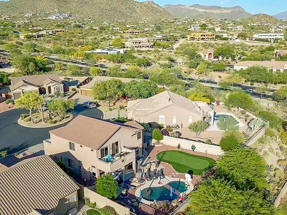 Located inside Las Sendas Luxury Living Gated Community and situated on a Cul-de-Sac in the Grayhawk enclave, this home comes with a heated pool and new putting green. Mountain landscape, city views, and gorgeous sunsets can be observed daily from the primary bedroom balcony. Updated kitchen includes all new countertops, appliances, sink and faucet. Other upgrades include primary bath shower, drop-in BBQ, Indoor paint, indoor and outdoor window shades, Pentair pool heat pump and variable speed pool pump, and much more. Community amenities include award winning golf course, spa, exercise facility, pickleball and tennis courts, playgrounds, 2 swimming pools, splash pad, and hiking trails. Minutes away from shopping, restaurants, Salt River access, Saguaro Lake, Mesa Gateway and Sky Harbor.
