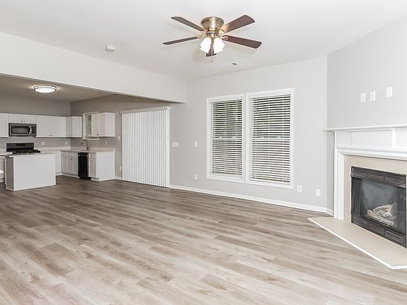 High ceilingsFront porchOpen floor planBackyard patioLarge windowsStainless steel appliancesModern kitchen