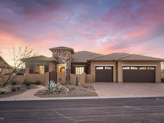 Panoramic Mountain, Golf & Sunset views make this a ''MUST SEE'' property in the Preserve at Saddlebrooke. Sited at the top of a quiet culdesac high above the golf course & next to a natural desert lot, this lovely semi custom Canyon model has so much to offer. A Private separate guest CASITA with full bath sits out back by the beautiful water feature. Upgrades abound! Gourmet kitchen has Monogram stainless appliances & granite counters. A spacious dining area & Great Room with custom Entertainment center & surround sound make this a comfortable retreat. An extra large master suite w/separate sitting area & en-suite bath include a walk-in shower, dual vanities & large walk-in closet with separate door leading to laundry room. Alder wood doors and Plantation shutters throughout. A must see! An extra large master suite w/separate sitting area & en-suite bath include a walk-in shower, dual vanities & large walk-in closet with separate door leading to laundry room. Alder wood Doors and Plantation shutters throughout spacious back yard features a large covered patio with hurricane force electric shades, built in gas barbecue station and large natural grass area complete with a beautiful waterfall feature and gas fire pit. Zoned AC and a whole house air purifying system are a huge plus. Please come and see this beautiful home!
