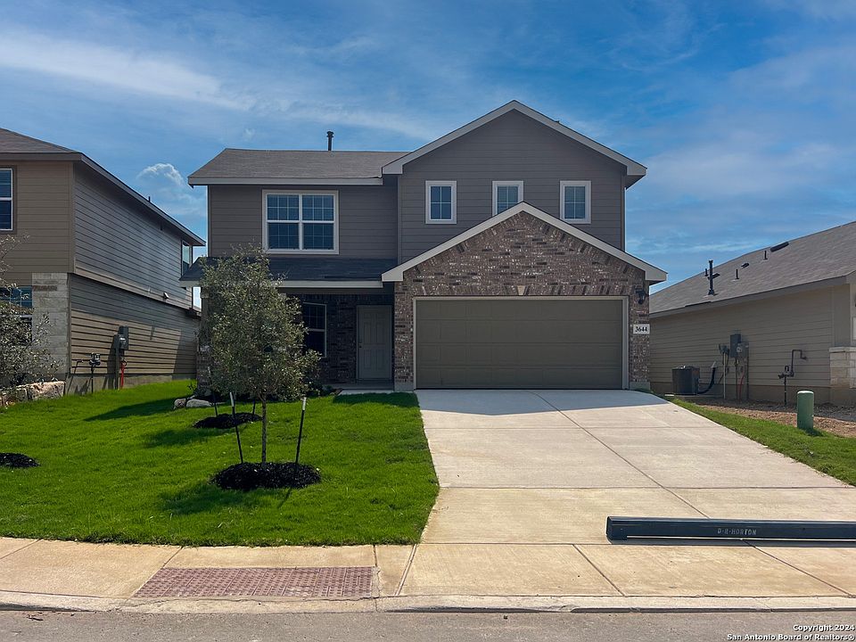 The Walsh is a two-story, 2323 square foot, 4-bedroom, 2.5 bathroom. A spacious covered front porch opens into a beautiful formal dining room. Follow the entry hallway into a stunning open kitchen featuring stainless steel appliances, granite countertops, stylish white subway tile backsplash, spacious corner pantry, tons of cabinet space and a large eat-in breakfast bar. The kitchen opens to a spacious living room, complete with a stunning vaulted ceiling. The living room extends to a lengthy covered patio (per plan), perfect for outdoor dining or just simply keeping an eye on the kids while they play outside. The private main bedroom suite is located downstairs off the family room and offers dual vanities, separate tub and shower, ceramic tile flooring, water closet and unique, storage-friendly, walk-in closet with shelving. A half bathroom is located off the family room and an oversized utility room is located off the kitchen by the stairs. The second floor includes a spacious game room or office area, a second full bath, and three large secondary bedrooms with walk-in closets. You'll enjoy added security in your new home with our Home is Connected features. Using one central hub that talks to all the devices in your home, you can control the lights, thermostat and locks, all from your cellular device. Additional features include 9-foot ceilings, 2-inch faux wood blinds throughout the home, luxury vinyl plank flooring in entryway, family room, kitchen, and dining room, ceramic tile at all bathrooms and utility room, pre-plumb for water softener loop, and full yard landscaping and irrigation.