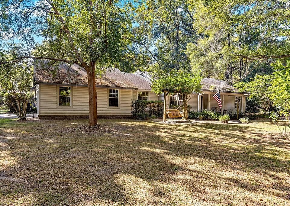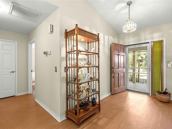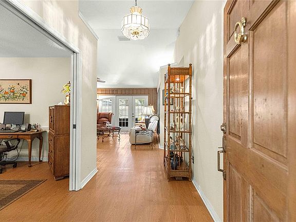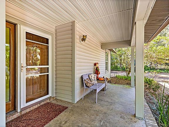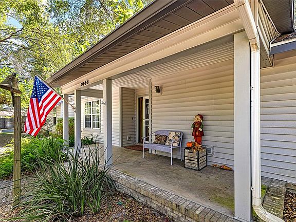 Beautiful South East Ocala pool home on 0.99 acres. Rare find for a large priviate lot almost an acre, with an in-town location minutes to downtown Ocala. Charming home with over 2,000 sq ft under air, and total space over 4,000 total SQ feet. This well-maintained 3 bedroom, 2 bath, 2-car garage home features a spacious living room with cathedral ceilings and a wood-burning fireplace, plus a formal dining room with pocket doors. The eat-in kitchen offers a center island, abundant cabinet and counter space, and a built-in desk, along with an additional dining area. The primary suite includes a walk-in closet, jetted corner tub, walk-in tiled shower, and dual-sink vanity. Two guest bedrooms and a guest bath with direct access to the pool lanai provide comfort and convenience. Inside laundry room includes storage cabinets and a utility sink. Outdoor living shines with a screen-enclosed, electric-heated pool featuring multiple seating areas, plus a separate screen-enclosed porch overlooking the fenced backyard. Property offers privacy, mature trees, and ample space for relaxation or entertainment. Move-in ready SE Ocala home close to schools, hospitals, parks, shopping, dining and more.