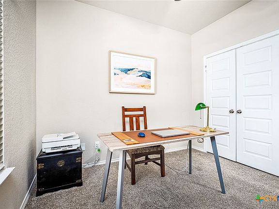 Great Floor Plan w/ this Spacious 4 or 5 bedroom, 4-bath.Great Location next to the the NEW NB City Park off Hunter Rd. (Near Gruene) just off I-35 on the north side of New Braunfels-minutes from Tanger Outlet Mall, dining, and NB Gruene Music Venues and all the downtown shops and restaurants. The 5th bedroom downstairs can easily serve as an office (Photo's show this room as office currently). The kitchen has a desk too and an abundance of cabinets and a great windows for an AIRY feel throughout the living area. you'll find upgraded light fixtures and ceiling fans that enhance both style and comfort. Enjoy two living areas-perfect for entertaining or relaxing. One upstairs bedroom includes its own private en-suite bath, ideal for guests or multi-generational living. The spacious backyard boasts an oversized covered patio, offering plenty of room to unwind or host gatherings. Cloud Country Community is connected to the Comal ISD's New Elementary School in Mayfair which l serves Pre-K through 5th-grade students.