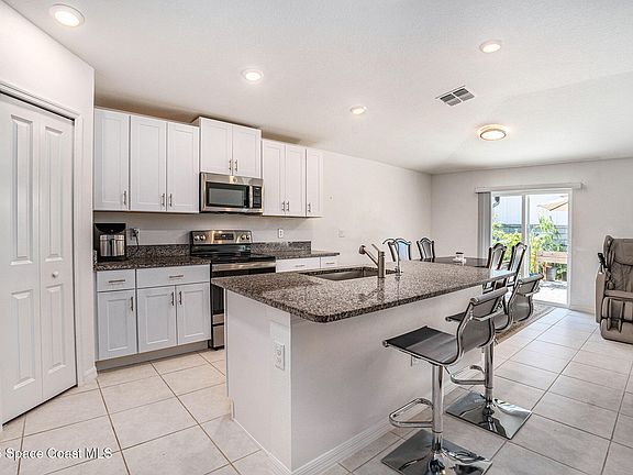 Only 2 years young! This popular Hartford floor plan offers 4 bedrooms, 2 baths, and 1,936 sq. ft. of modern single-story living. The open layout features a spacious family room, dining area, and kitchen with granite counters, white cabinets, stainless steel appliances, and an added kitchen water filter. The private owner's suite is set apart from the secondary bedrooms and includes a spa-like bathroom with a walk-in shower. Upgrades include a PurityH2O whole-house salt water conditioning system, gutters, new dining room light, backyard pavers, and a stone garden bed in the front yard. The backyard is a gardener's paradise with banana trees, avocado, peppers, spinach, purple yam and more. Located in Abbott Square, residents enjoy a resort style clubhouse, gym, playground, BBQ, picnic areas and pool. Just minutes from golf, schools, and water recreation.