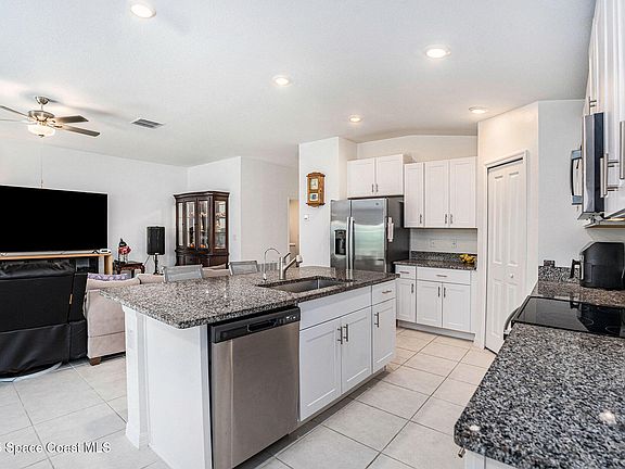 Backyard paversModern single-story livingSpa-like bathroomSpacious family roomOpen layoutDining areaKitchen with granite counters