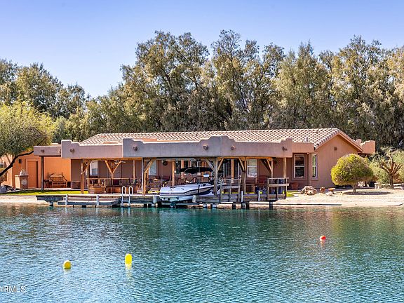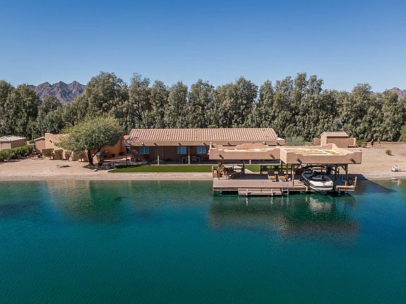 Embrace the allure of magnificent sunsets, glass-smooth water for skiing, & miles of wilderness for ATV riding. Lakeside Ski Village is a private, gated enclave with 21 homes on 2 tournament ski lakes, with 2 regulation slalom courses & jump ramp. This 3 bedroom, 2 bath, 3 car garage, is the perfect ski get-a-way. It includes full home reverse osmosis water filtration, Hunter Douglas Black Out Blinds, putting green and covered patio, covered dock w/a boat lift on the West lake. The 2001 Ski Natuique boat is also available. Lakeside is the only ski community in AZ with an on-site fuel dock, making your lake adventures hassle-free. With the lowest HOA fees of any AZ tournament lake, it includes an on-site caretaker for the common area. Don't miss this exceptional opportunity!