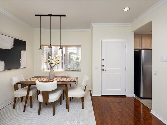 This charming & turnkey single-level 2-bed, 2-bath condominium is conveniently located just a few blocks from downtown Culver City. Located on the second floor of a 3-story building with a community elevator, this spacious unit is in excellent condition. This unit is located at the end of the building and has no shared walls on either side. When you enter into the large living room & dining area, you are immediately greeted by gleaming wood floors. The open concept floor plan has the dining room, living room, and kitchen all flow into each other. The living/dining areas feature recessed lights, crown molding, and a charming gas fireplace. Off of the living room is a private outdoor patio area. The kitchen with breakfast bar has a stainless steel refrigerator, dishwasher, built-in microwave, gas range, and ample cabinetry. Down the hallway is a laundry closet with in-unit stackable washer & dryer. There is a full bathroom in the hallway which services guests & 1 of the bedrooms. The second full bathroom is located in the primary suite with walk-in closet. Other features of this well-maintained unit include central HVAC system with Nest thermostat. Cardiff Court HOA has a lushly landscaped interior courtyard, HOA gym & billiards room, outdoor sundeck for outdoor lounging & dining, controlled/intercom access to the entry gate & parking, and 18 guest parking spaces in the subterranean garage. This unit comes with 2 assigned parking spaces (tandem) on the Upper Garage level. Located in a convenient & central location, this property is close to public transportation, the 10 FWY, parks, schools, shopping, dining, and entertainment!