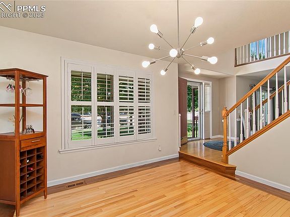 Welcome to your dream home! This extraordinary 6 bed, 4.5 bath home showcases a magnificent two-story layout, a walk-out basement with a wet bar, and a wealth of upscale features. Nestled in a highly sought-after neighborhood free from HOA restrictions, this home embodies the epitome of comfort, style, and convenience. With no rear neighbors, you can enjoy the peace on the deck or patio, or unwind in the hot tub in absolute tranquility. The property offers RV parking adjacent to the 3-car garage and swift access to Powers and Milton Proby. The expansive half-acre lot ensures effortless maintenance of the landscaped exterior with plenty of space to enjoy the lush grass and playset. The property includes mature trees and bushes that not only enhance privacy but also provides a stunning display of fall foliage colors. Inside, the beautifully inlaid wood floors in the formal dining room lead seamlessly to the gourmet kitchen, featuring granite countertops and a charming eat-in breakfast nook with direct access to the wood deck. The main-level primary suite boasts dual closets, a spacious walk-in closet, and a lavish 5-piece en suite. Completing this level are a convenient laundry room, an additional half bath, a formal living room and family room, offering versatile spaces for everyday living and entertaining. Upstairs, three generously-sized bedrooms await, with two sharing a full bathroom, complemented by an additional full bath and a roomy loft/office area. The walk-out basement is designed for entertaining, featuring a stylish wet bar, a pellet stove for cozy gatherings, two additional bedrooms, and a full bath. It opens onto the patio with a hot tub, setting the stage for unforgettable evenings. This home effortlessly checks all the boxes and is primed to become your forever home, where cherished memories are destined to flourish. Don't miss the chance to make this remarkable property yours; schedule a showing today and experience the pinnacle of Colorado living!