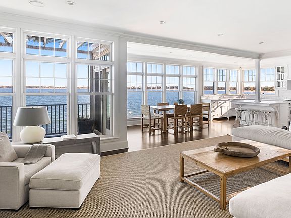 Experience the very best of waterfront living in Sag Harbor. Perfectly positioned on the shores of Noyac Bay and oriented north to capture both sunrise and sunset, this exceptional location is truly unmatched. Reimagined from the ground up, this turn-key residence embodies modern Hamptons living, where every detail is crafted for comfort, style, and a seamless connection to the water.Expansive windows bathe the interior in natural light while showcasing sweeping, unobstructed bay views. The open-concept design unites the gourmet kitchen, dining area, and living room into one harmonious space—ideal for entertaining or enjoying a peaceful weekend by the water. High ceilings, thoughtful finishes, and a clean, coastal aesthetic create an atmosphere of effortless sophistication.The primary suite serves as a private sanctuary, offering breathtaking water views, a luxurious en-suite bath.Three additional guest bedrooms and two beautifully appointed bathrooms provide comfort and versatility for both family and friends.Step outside to your private deck to enjoy morning coffee or take in evening sunsets over the tranquil bay. Multiple outdoor spaces enhance the experience, including a covered dining deck, a sun-drenched waterside patio, and a quiet side patio complete with a BBQ and additional dining area.Whether hosting summer celebrations or enjoying quiet winter retreats, this home offers a rare blend of design excellence, convenience, and unparalleled setting. Effortless, elegant, and distinctly Sag Harbor—this is waterfront living at its finest.