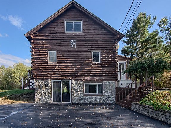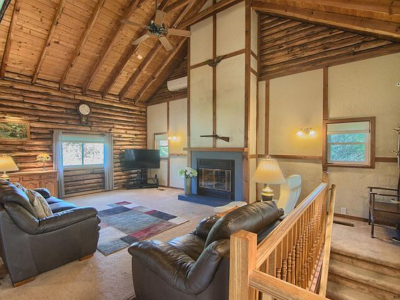 Take a look at this open concept 2 bedroom log home on a little over 3 acres. This home is built into a hill so you pull in the driveway or garage and walk right in. Main floor of the home features an open living room, kitchen and dining room with vaulted ceiling, full bathroom, 3 season room, floor to ceiling fireplace and open staircase to the master bedroom loft. Lower level of the home offers a family room/ office, half bath and 2nd bedroom. The exterior of this property has so much to offer! Open fields, apple tree, pond, patio, garage, shed and large 28 x 44 outbuilding. Very Good Condition