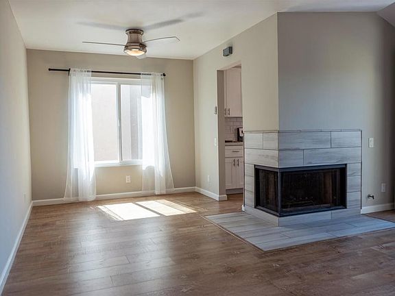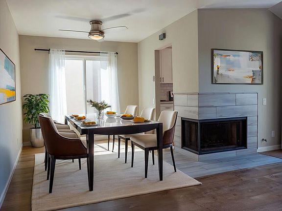 Welcome to this beautifully updated 2-bedroom, 2-bath condo located in the sought-after community of Avocado Village. This inviting end-unit offers a bright and open layout with stylish modern finishes throughout. Enjoy cooking in the upgraded kitchen featuring crisp white cabinetry, quartz countertops, and stainless steel appliances. The spacious living room is highlighted by a cozy fireplace and opens to a large private deck—perfect for entertaining or relaxing with a view. Both bedrooms and full bathrooms and have been tastefully refreshed, and you’ll appreciate the convenience of a full-size stackable washer and dryer, along with newer central AC and heating. Updated vinyl flooring and fresh paint create a clean, contemporary feel throughout the home. Two large sliding glass doors provide seamless indoor-outdoor living and direct access from the kitchen and living area to the deck. This unit also includes a detached one-car garage and an additional reserved parking space. With its excellent location, modern upgrades, and thoughtful layout, this condo is the perfect place to call home.