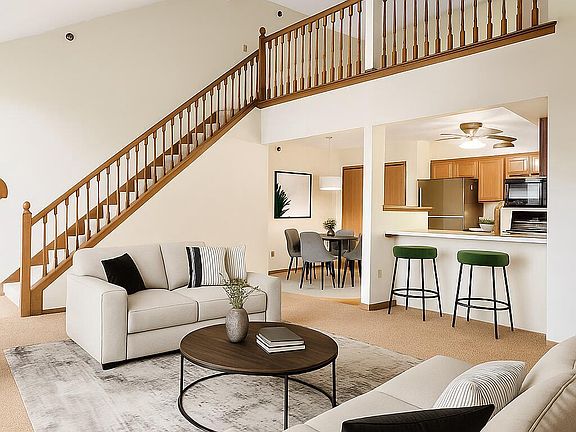 Wonderful 2BD/2BA second floor condo in an ultra convenient location. This exceptional unit offers a welcoming great room w/vaulted ceiling and abundant natural light. Lovely kitchen offers large pantry closet and complete appliance package w/ample dining space & breakfast bar. Upper loft offers a fireplace and overlooks the great room. The primary suite features a private bathroom, and bedroom two offers an oversized WIC. Hall bathroom offers walk-in shower and full size laundry Balcony overlooks the quiet courtyard. 2+ car garage and private entry are additional perks! This is a must see!