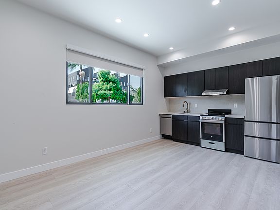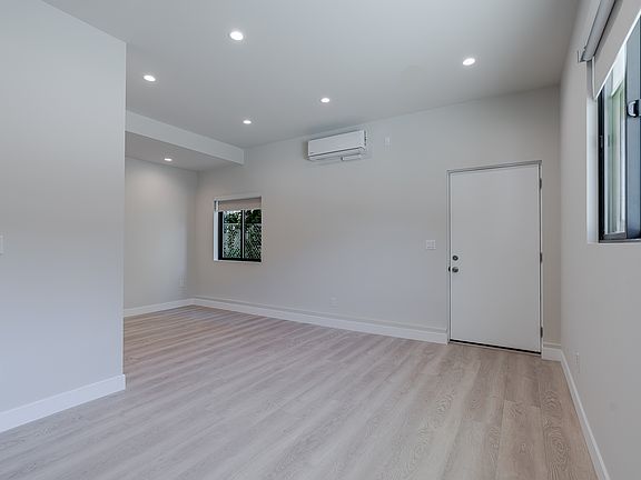 Discover this beautifully remodeled studio apartment, thoughtfully upgraded from top to bottom. This unit boasts brand-new vinyl flooring and recessed lighting throughout, creating a modern and welcoming ambiance. The kitchen is fully equipped with a stainless steel appliance package, including a dishwasher, stove, and refrigerator. Enjoy the comfort of a mini-split AC in the living area, and the convenience of an in-unit washer and dryer.